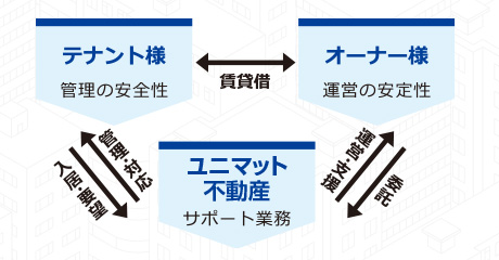 オーナー様に代わり、ご所有不動産の管理業務を通して大切なご資産の維持・価値向上をトータルサポートします。